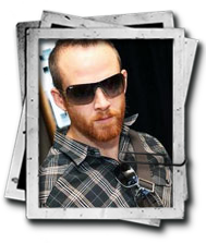 Und das ist unser Mann hinter dem Schlagzeug. Ein Biest, das nicht nur dafür sorgt, dass wir im Takt bleiben, sondern uns auch gelegentlich damit in den Arsch tritt. Ihr glaubt gar nicht wie effektiv so ein kurzes Drumsolo sein kann, eine hitzige Diskussion zum Schweigen zu bringen. Warum seine Stimme erheben, wenn man sich so viel schneller Gehör verschaffen kann? Ich behaupte ja, dass er, sobald er hinter seinen Drums sitzt kein Mensch mehr ist. Was er da manchmal veranstaltet ist einfach nicht mehr menschlich. Es gibt kein Takt der ihm zu kompliziert und keine Idee die technisch nicht umsetzbar wäre. Er sieht harmlos aus, ist er auch, aber ich bin mir sicher, dass wenn seine Drums reden könnten, sie etwas anderes behaupten würden. Er geht gerne an die Grenzen des Machbaren und hin und wieder lässt sich das an blutende Finger erkennen, wenn er mal wieder voller Elan daneben gegriffen hat. Aber er hat nicht nur ein gutes Händchen die Drums betreffend, sondern auch was den ganzen Businesskram angeht. Termine, Gage und all das Zeugs. Eigentlich bin ja ich derjenige, der mit einem Haufen Zahlen jongliert, aber er hat da einfach den besseren Durchblick oder auch einfach mehr Ruhe. In meinem Job kommt man ja mit Ruhe nicht besonders weit. Da müssen Entscheidungen schnell getroffen werden, sonst zieht man den Kürzeren. Vielleicht könnte man ihn als den Ruhigsten von uns bezeichnen, aber auch nur solange, bis ihn der Rest nicht zu irgendwelchen verrückten Plänen überredet hat.