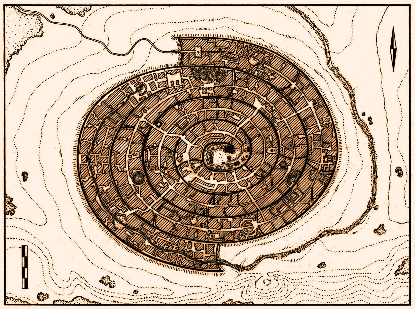 Da die Stadt ganz symbolisch für den Mond galt, wurde sie dementsprechend gestaltet, dass sich während der Nacht das Mondlicht beeindruckend in den silbrigen Bauten aus weißen Marmor spiegelt. Das ganze Land östlich des Anduins, welches die Stadt umgibt, wird Ithilien, Mondland, genannt, die Lage der Stadt wurde aber in erster Linie aus strategischen Gründen erwählt, um den oberhalb der Stadt liegenden Pass, Cirith Ungol, zu sichern.