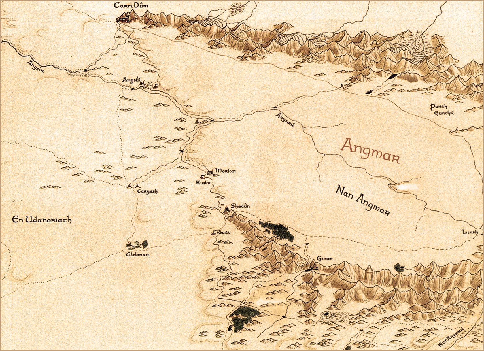 Etwa um 1300 D. Z. begründet der Fürst der Ringgeister im nördlichen Teil des Nebelgebirges ein Reich, um von dort aus Arnor, das nördliche Königreich der Dúnedain, zu zerstören. Dabei bleibt er zunächst unerkannt, und wird Hexenkönig von Angmar genannt. Er versammelt verschiedene Feinde der Dúnedain um sich, darunter Orks und Menschen. Sein Sitz ist die Stadt Carn Dûm.